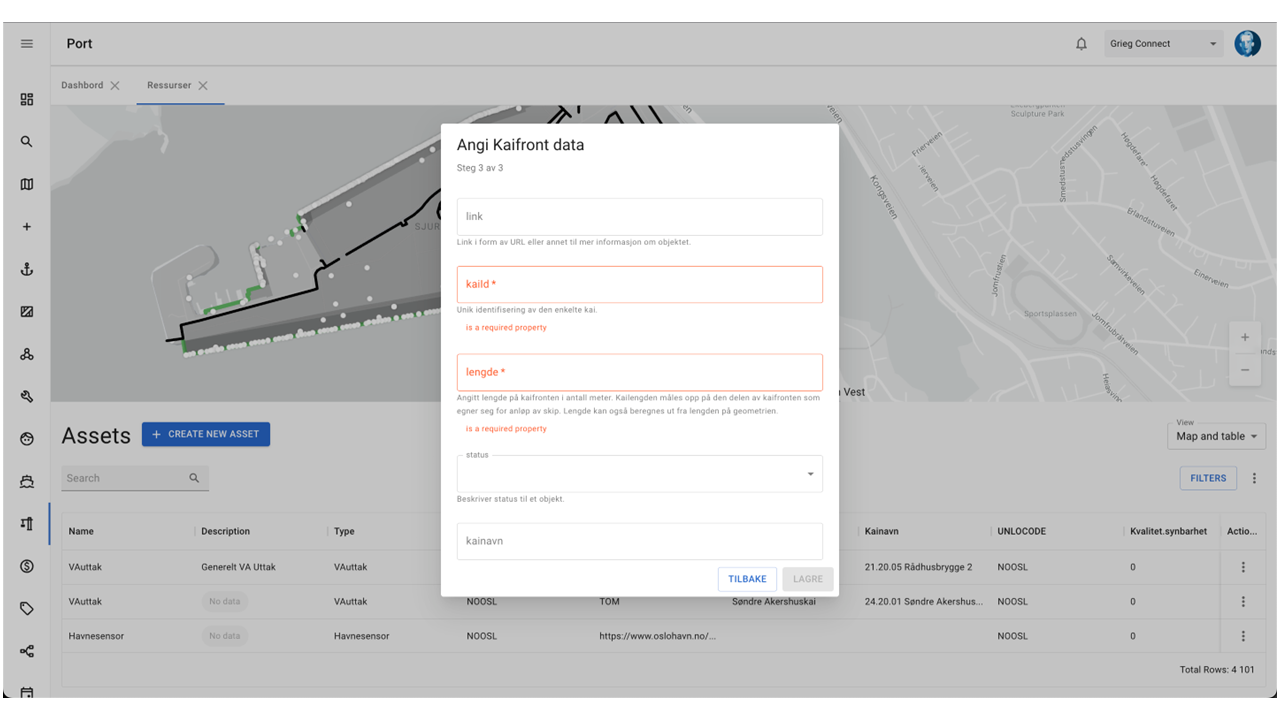 I arbeidspakke 1 – Havnedata er det utviklet kartvisningsverktøy for bruk i havna. Arbeidspakken er en videreføring, og ferdigstilling av et prosjektarbeid som ble påbegynt i 2020 med finansiering fra Kystverket. Kartvisningsverktøyet som er utviklet kommuniserer direkte med felles nasjonal kartdatabase (SFKB) og viser alle havneobjekter fra registreringsinstruksen med egnede tegneregler i kart. Løsningen har en enkel og brukertilpasset funksjonalitet for administrativ ajourføring av objektene både i forhold til egenskaper og enkel geometri. Verktøyet er utviklet og prioritert i forhold til brukerbehovene i havna. Havnene og Kartverket har vært med i en arbeidsgruppe som har fulgt utviklingsarbeidet tett og bidratt i forhold til brukerbehov og prioritering.